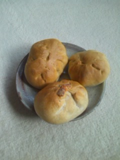 5)パンの表面に牛乳を塗って、180度に余熱したオーブンで、20分焼く。